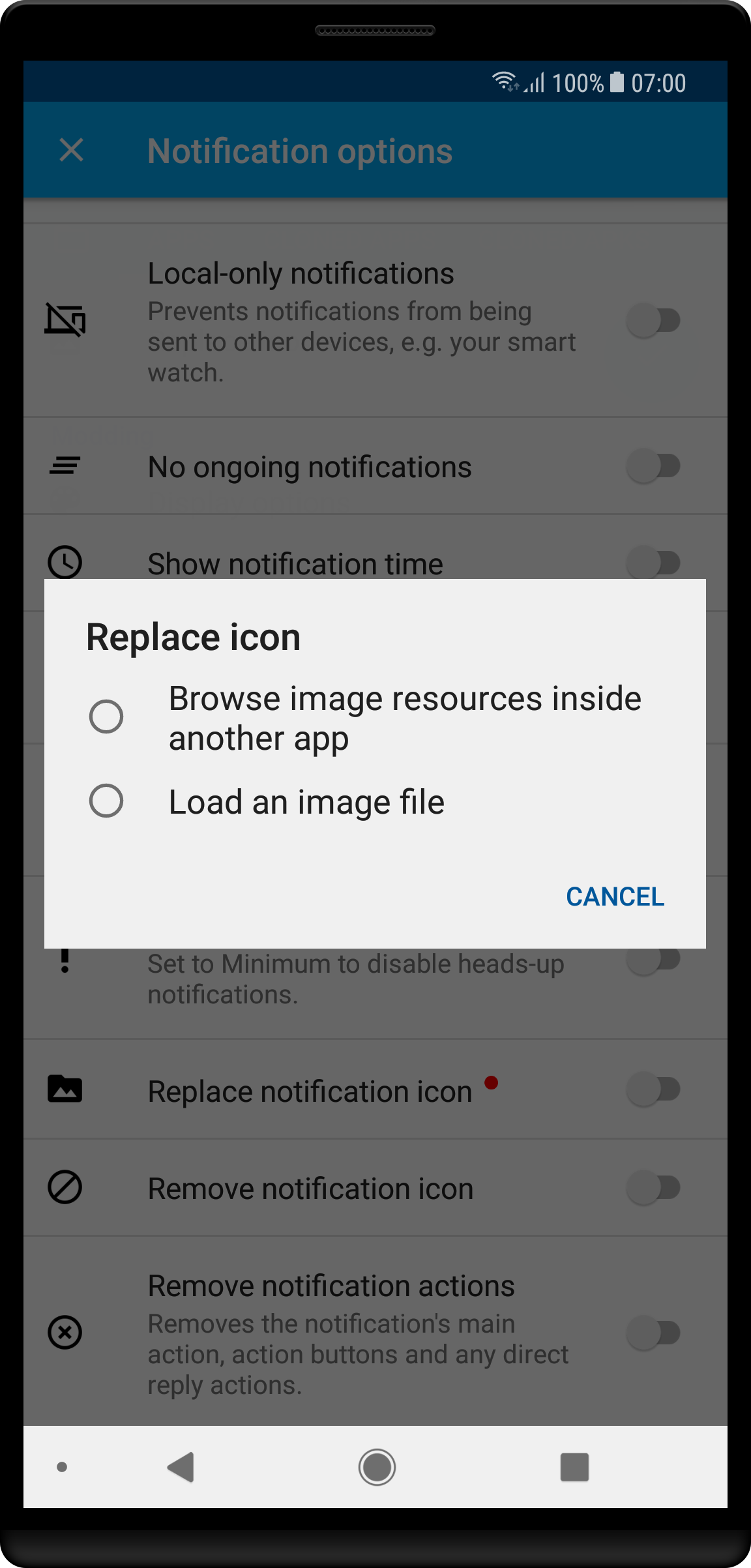 Upcoming notification options to replace the notification sound & icon. For the notification sound you can load .mp3 or .ogg files.