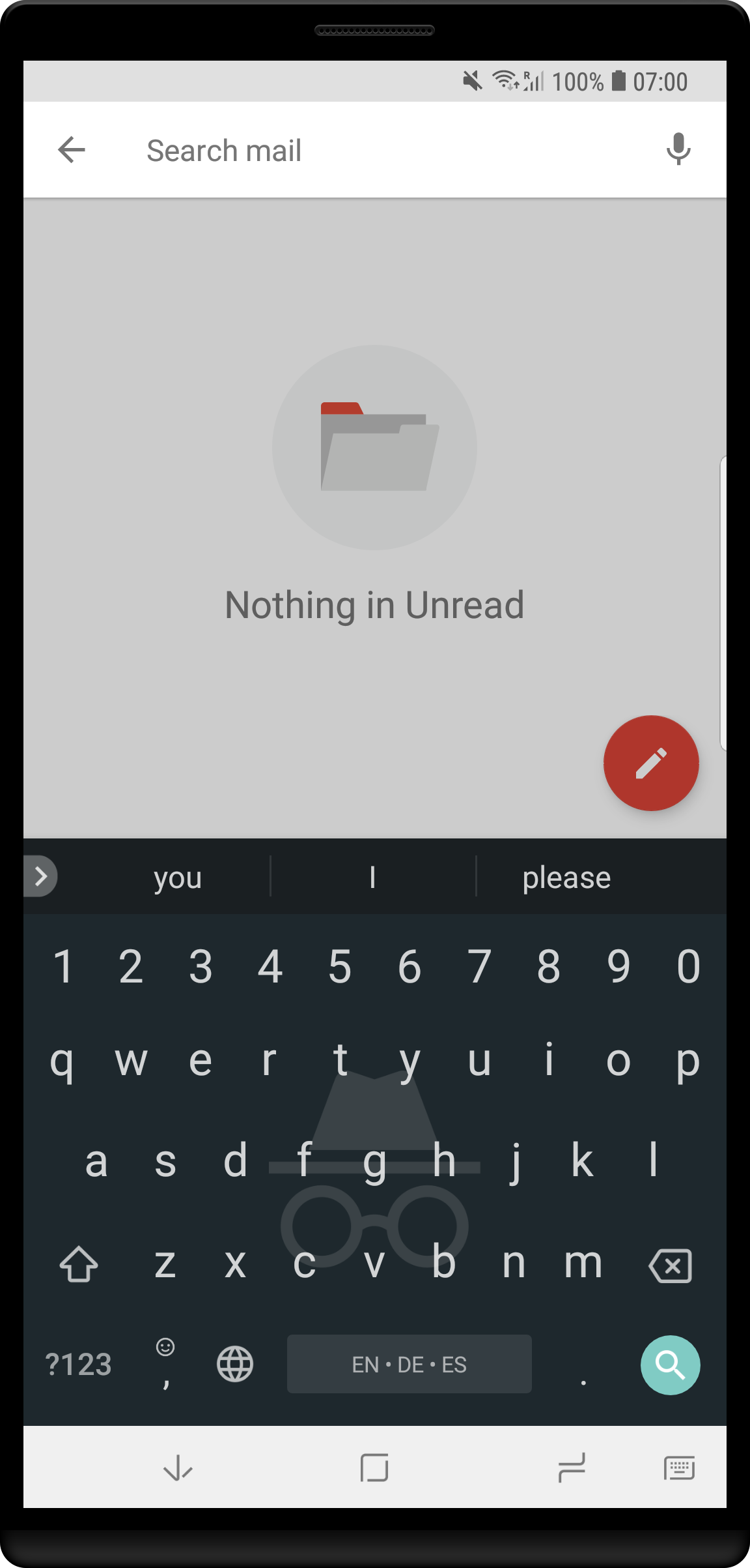Below an example using a Gmail clone with Gboard, which shows the incognito image in the background behind the keys.