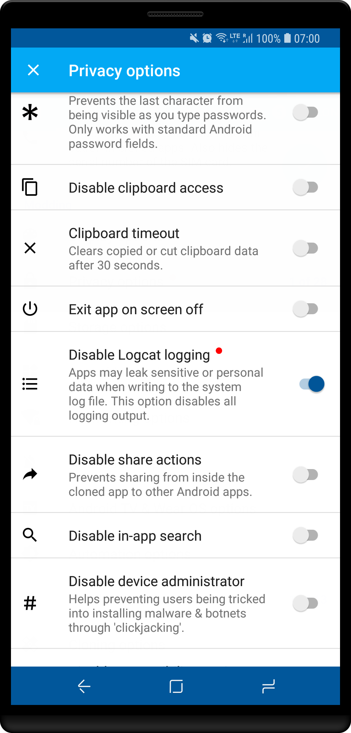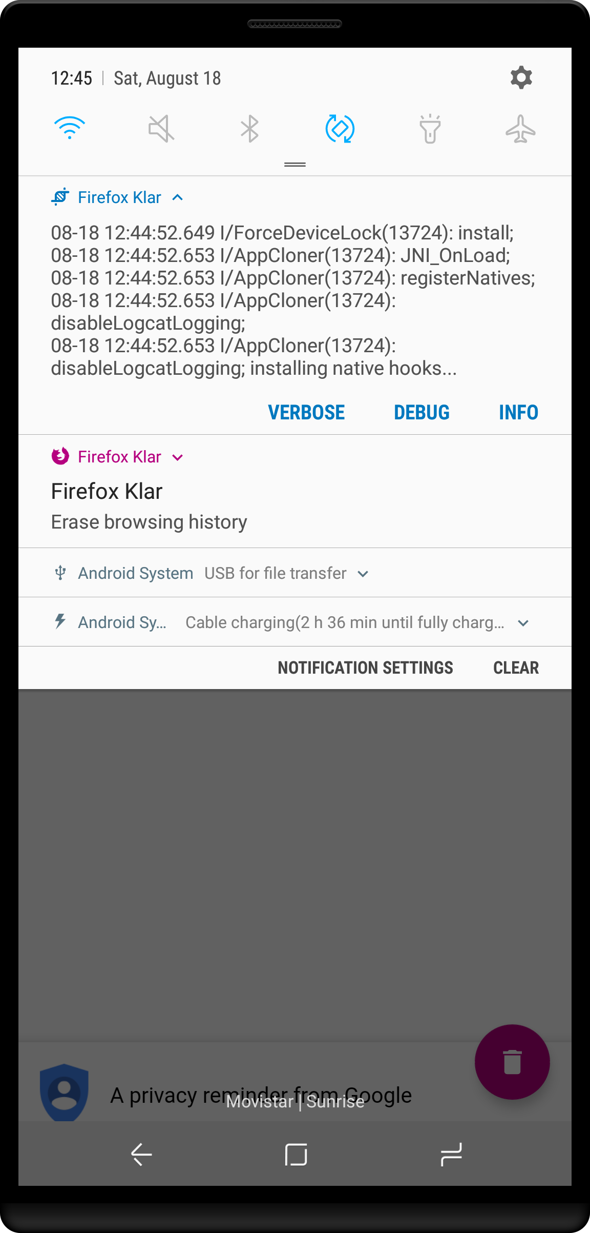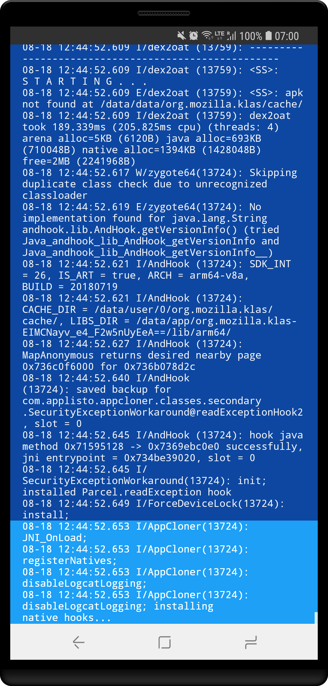 Take Firefox Klar, a privacy browser, which still logs information about pages you visit into the Android Logcat file. App Cloner 1.5.2 comes with a new privacy modding option Disable Logcat logging that disables all output to the Android Logcat at both Java and C/C++ native levels.