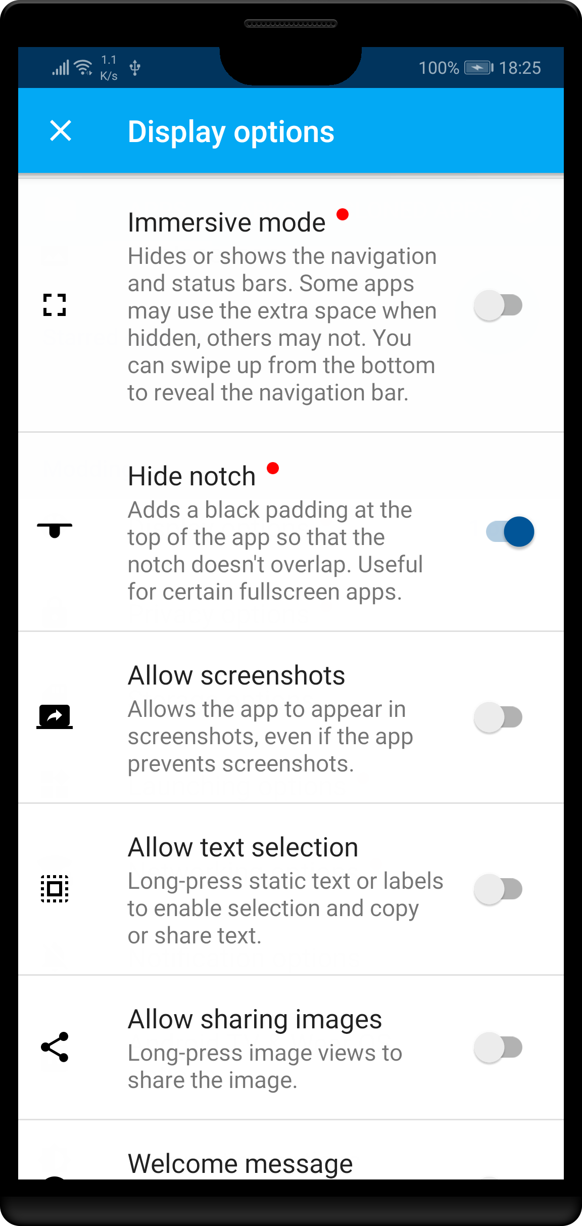 The last new option for App Cloner 1.5.17 is Hide notch. This adds a black padding at the top of the app to avoid the notch area overlapping any app content. Useful for certain fullscreen apps.