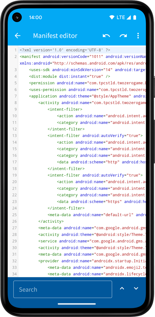 All edits are saved as patches in standard diff format. This ensures that, when the original app is updated and the XML file changes, your edits can still be applied, unless there’s a direct conflict (e.g. changes on the same line). In case of conflict, you can reopen the editor to view or copy the patch.
