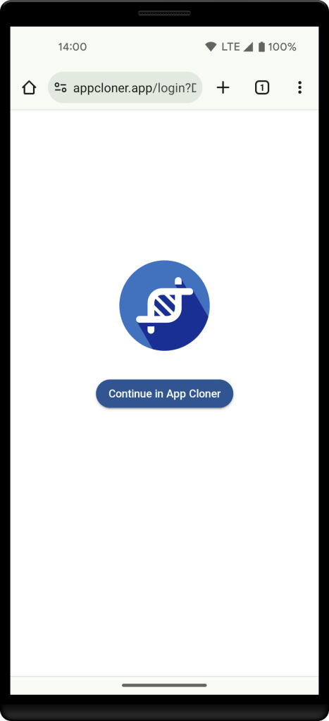 The link will open directly in App Cloner. Ensure you open the link on the same device where App Cloner is installed and where you initiated the login.