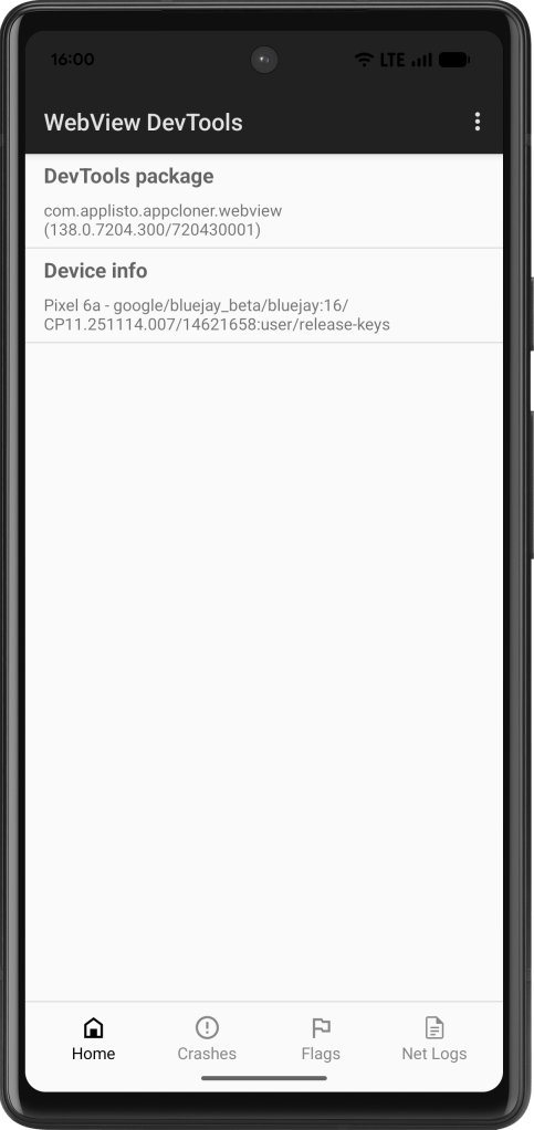 Once installed, the current version will be shown. You can also open the WebView DevTools interface to access extra debugging information, network logs and optionally enable experimental WebView flags.